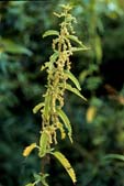Members of the family Urticaceae account for the majority of contact urticaria throughout the world.19 The most common culprit in the United States is the stinging nettle (Urtica dioica). Stinging nettle grows throughout the world, except in the lowland trpoics. It is well-entrenched in American soil, especially in moist woods, road sides, and waste places (Figure 1).17,19,20 The spurge nettle, bull nettle, or 'tread-softly' (Cnidosculus stimulosus) is also a common cause of contact urticaria.17,20 Urtica urens has also been reported to cause allergic contact dermatitis.21 Reactions to these, plants, however, pale in comparison to those elicited by members of the Dendrocnide genus of the Urticaceae family. Mostly found in Eastern Australia rain forests, these trees grow up to 40 meters in height. Young shoots are covered with stiff stinging hairs. Urticaria from these may be severe and last for weeks, and contact with water or cold objects reactivates the urticaria.16 Severe, intermittent, stabbing pains may follow the course of lymphatics. Many equine deaths and one human death due to Dendrocnide members have been documented. 15