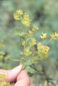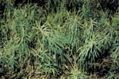 Euphorbiaceae is a large family.29 Some are cultivated as ornamental house plants or border and rock garden perennials.15 Many are weeds. In botanical understanding, a "weed" is a plant that maintains itself in a habitat of continual disturbance. Therefore, weeds thrive in close proximity to man and his domesticated plants and animals.31 More practically, a weed is a plant that interfere's with man's activities or his welfare.31 A weed is a plant growing where it is not wanted, and it interferes with crops, roadsides, landscape plantings, livestock, irrigation ditches, etc. In recent years, the leafy spurge (Euphorbia esula) has invaded Minnesota, Wisconsin, and Michigan, as well as the front range of the Rocky Mountains in Colorado. E. esula will die out in 10-12 years in the absence of disturbances to its habitat. Therefore, the best way to get rid of it is to do nothing! However, 'doing nothing' is impossible in an inhabited area.