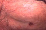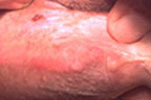 This 79 year old has a several year history of lesions on the penile shaft. |